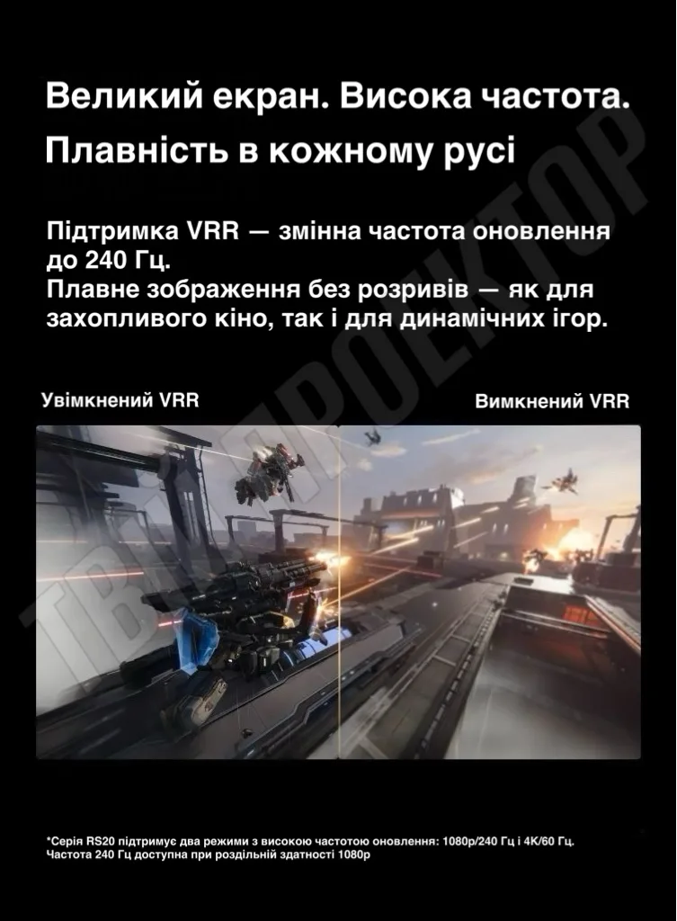 Ultra — один з найкращих проєкторів для ігор на ринку. Завдяки підтримці ALLM, VRR, затримці лише 1 мс і режиму Dual Mode (4K@60 Гц або Full HD@240 Гц) він забезпечує плавний, безривковий геймплей, що ідеально підходить для шутерів, гонок і кіберспортивних жанрів.