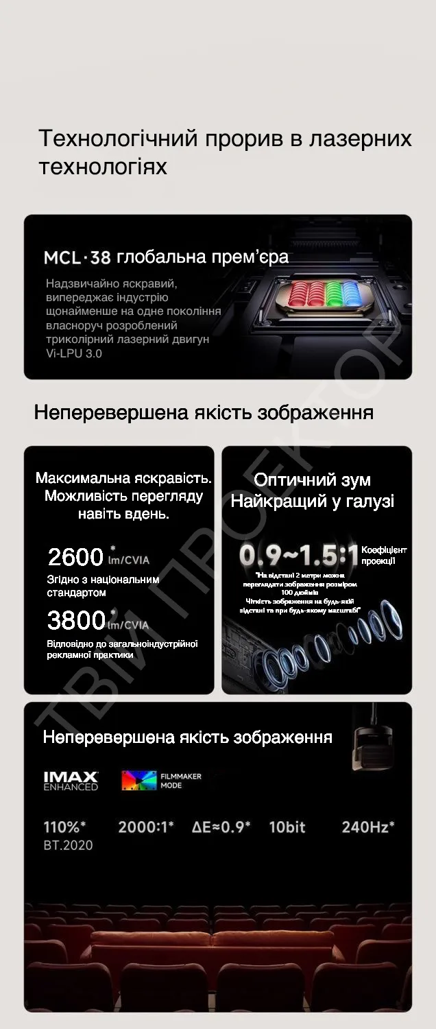 Лазер MCL 38: Новий лазер забезпечує природні, точні та автентичні кольори з покращеною яскравістю і контрастністю.