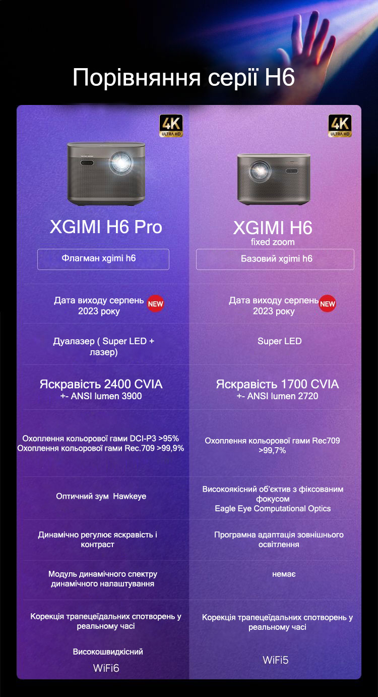 Чим H6 PRO кращий від XGiMI Horizon ULTRA 4K?