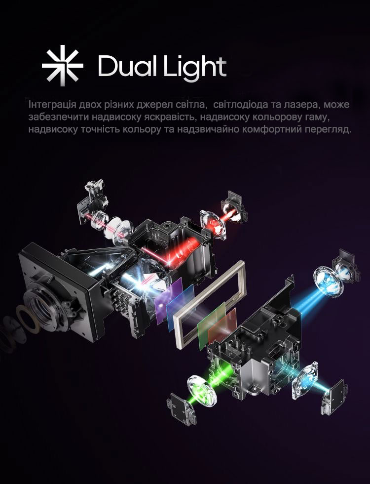 Джерело світла: Лазер + LED (Світлодіоди) — запатентована система Dual Light